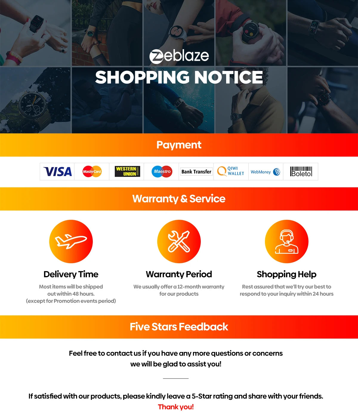 | Experience the next level of smart living with the Zeblaze GTS 3 Pro Smartwatch, featuring a vivid AMOLED screen and advanced health monitoring tools. Designed for those who want a powerful, stylish, and reliable companion for daily life. ✅ 1.91” AMOLED Always-On Display – Ultra-bright colors, sharp visuals, visible under sunlight ✅ Comprehensive Health Tracking – 24/7 heart rate, SpO₂, stress & sleep monitoring ✅ 120+ Sports Modes – From running to yoga, track your performance with precision ✅ Bluetooth Calls & Notifications – Answer calls, control music & stay updated from your wrist ✅ Slim, Lightweight Design – Built for comfort with a premium, modern look ✅ Long Battery Life – Up to 15 days standby, 7 days daily use ✅ Waterproof (IP68) – Resistant to rain, sweat & daily splashes 💡 Trusted by thousands of active users worldwide who value Zeblaze for reliable performance and stylish design. ⚡ Why It Stands Out Unlike regular smartwatches, the GTS 3 Pro combines luxury visuals with pro-level health features, giving you both style and function at an unbeatable value. 🔒 Our Guarantee ✔️ Secure checkout | ✔️ 14-day hassle-free returns | ✔️ Dedicated support 🔥 Special Launch Offer – 40% OFF + Free Shipping Today Only! 🚚 Fast worldwide delivery straight to your door. 💳 Pay safely with PayPal or any major card. 👉 Upgrade your lifestyle today – get the Zeblaze GTS 3 Pro before stock runs out! |